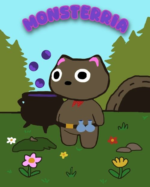 Monsterria is based in a fantasy world where an evil spore-ridden infection has taken over the nature surrounding your home. You, an apprentice taken under the paw of your powerful mentor, are in the midst of a battle defending the mountain you reside on when suddenly the spore-infected mob overtakes you and you are thrown down that very mountain. From there, it is your goal to make it back up to your mentor before it is too late. The problem is, the infectious spores have made their way down and into your path so you are forced to defend yourself to unlock each obstacle leading back up.